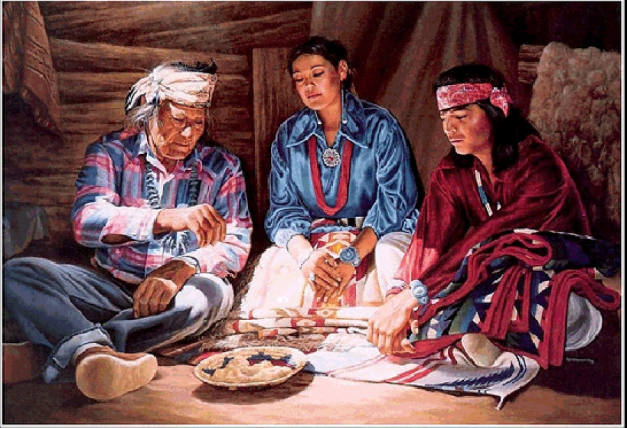 La maladie est d'abord traitée par les plantes médicinales dont les chamans ont une parfaite connaissance. Si le souffle guérisseur des plantes ne donne pas de résultat satisfaisant, le chaman va devoir se rendre dans le monde des esprits pour lutter en faveur du malade et rappeler son âme. Lorsque la mort s'approche de trop près, il doit renoncer. Il assume alors un autre rôle, celui de guide spirituel, en aidant le défunt à abandonner son enveloppe charnelle pour retourner dans le grand cycle de la nature.